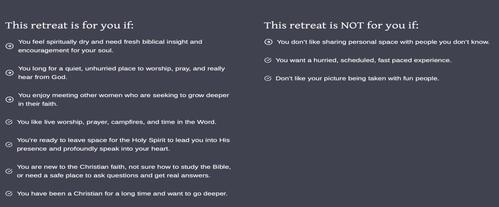 Here’s the bottom line: We have space to accommodate 60 women at a reasonable price of $200. A $100 deposit to save your spot is due by Sunday, April 27th. The second $100 will be due by Sunday, June 1. Invite a friend. You can register and pay your deposit by clicking the link below.